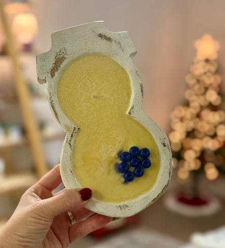 Blueberry Cobbler Wood Dough Bowl Snowman Candle